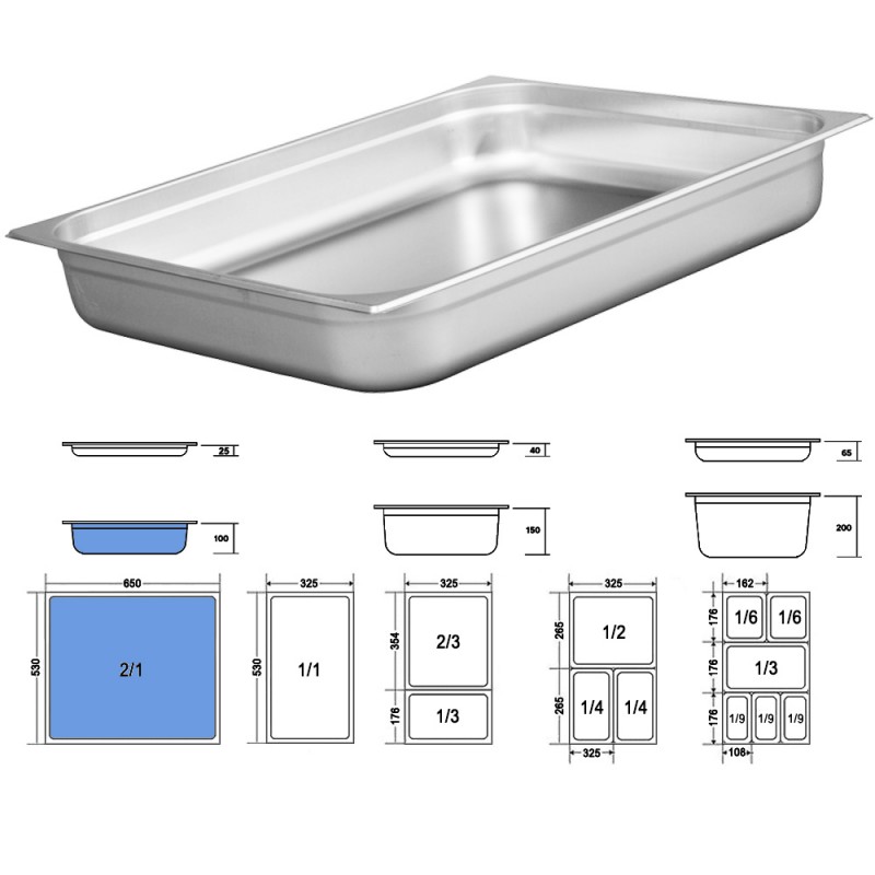 Σκεύος Gastronorm 2/1 Ανοξείδωτο Μ53xΠ65xΒ10cm GTSA
