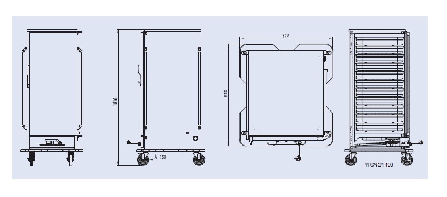 • με λεκάνη GN στο κάτω μέρος του θαλάμου για την παραγωγή υγρασίας και αποφυγή στεγνώματος του φαγητού