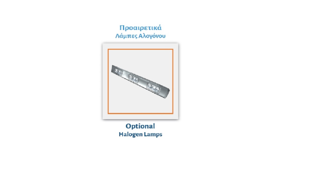 Μπορεί να εξοπλιστεί και με λάμπες αλογόνου (κατόπιν συνεννοήσεως).