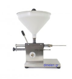 Επιτραπέζιο γεμιστικό μηχάνημα κατάλληλο για γέμιση κρουασάν, λουκουμά, ντόνατ, κλπ. με κρεμμώδη υλικά όπως μαρμελάδα, πραλίνα, sauce και άλλα προϊόντα παρόμοιας πυκνότητας.