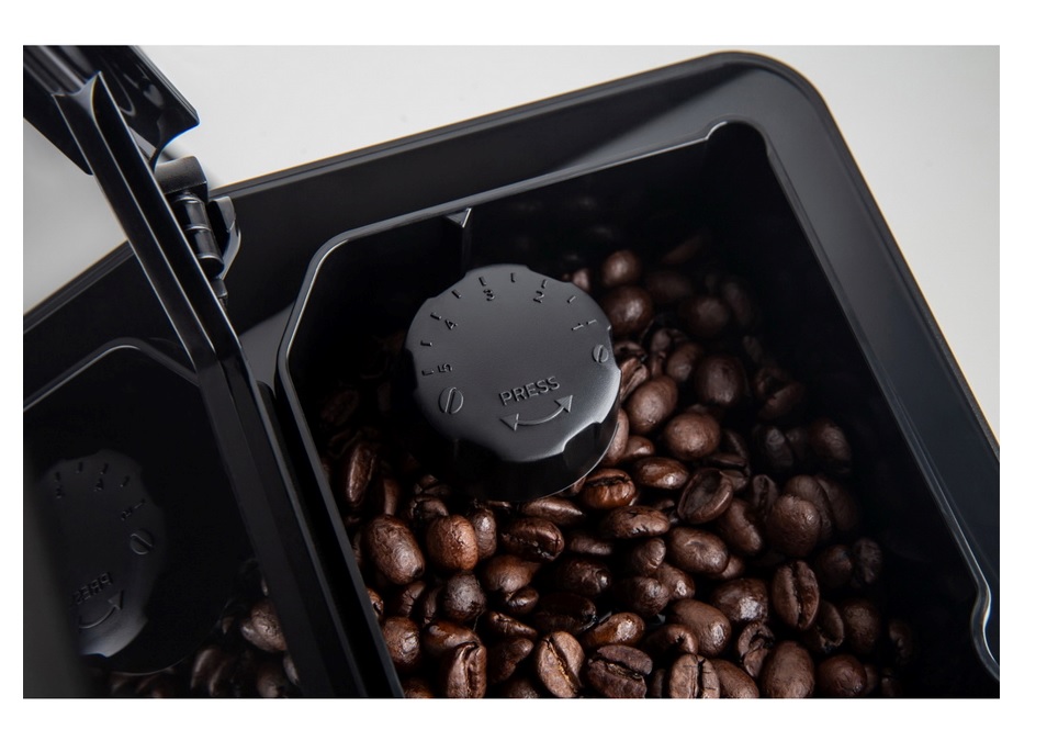 - Μύλος άλεσης καφέ με κεραμικά μαχαίρια που διασφαλίζουν αθόρυβη άλεση, μακροχρόνια υψηλή απόδοση και εκχύλιση των καλύτερων αρωμάτων του καφέ