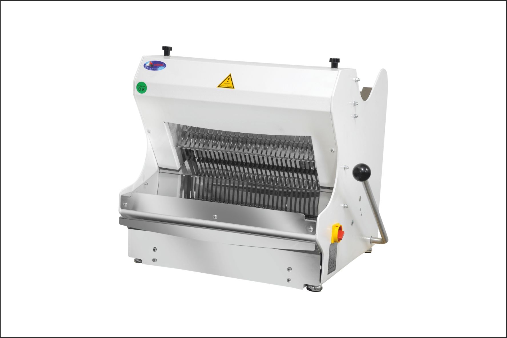 Κοπτικό μηχάνημα ψωμιού σε φέτες (φρυγανιέρα) βαρέως τύπου επαγγελματικής σειράς ηλεκτρικό μονοφασικό επιτραπέζιο με ανοξείδωτα μαχαίρια κοπής.