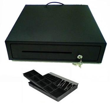 Μεταλλικό συρτάρι - Εσωτερικό συρόμενο μεταλλικό - 4 θέσεις για χαρτονομίσματα (με μεταλλικά ελάσματα) - 8 θέσεις για κέρματα (με αποσπώμενο κερματοδέκτη) - Χρώματος μαύρο. - Διαστάσεις : 410mm (Π) x 420mm(Μ) x 100mm(Υ) - Κλειδαριά 3 θέσεων - Διατίθεται πηνίο 6V ή 12V ή 24V - Δυνατότητα connector επιλογής χρήστη (τύπος Καρφί, RJ11, RJ14 κ.τ.λ.)
